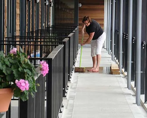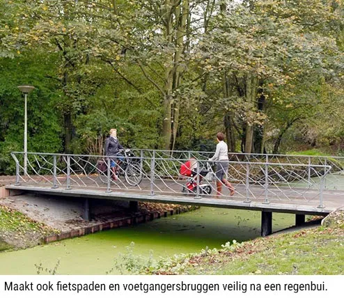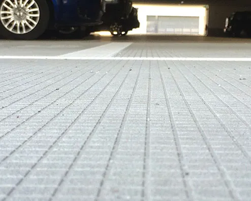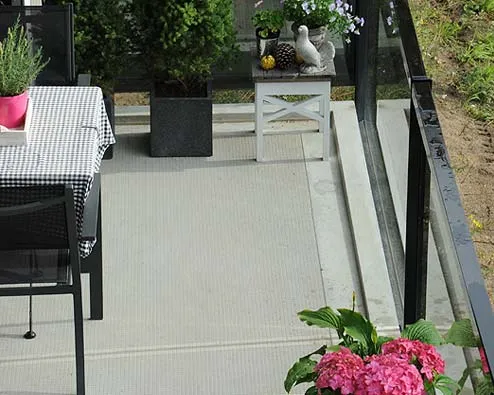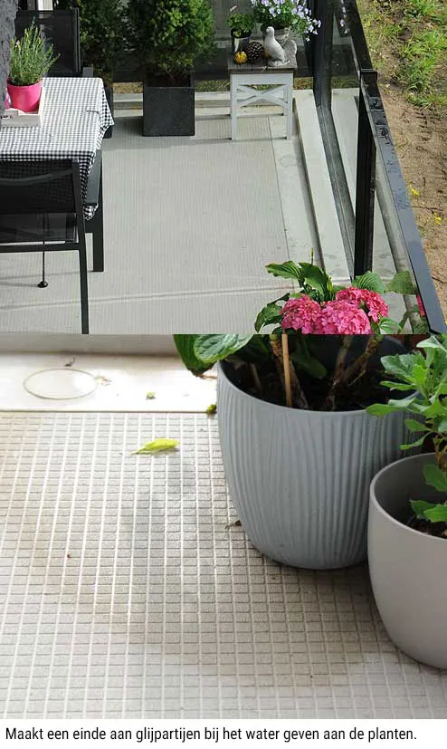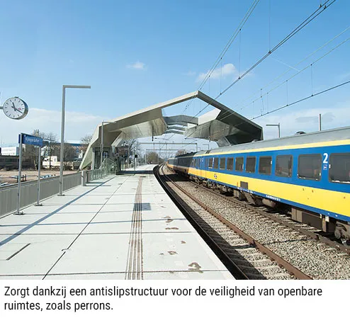 De in de betonmal gelijmde GIAN structuurmat stempelt als het ware een antislipstructuur in de natte betonmassa.Wat voor voordelen dit biedt als het prefab beton is uitgehard, laten deze bovenstaande foto's zien.